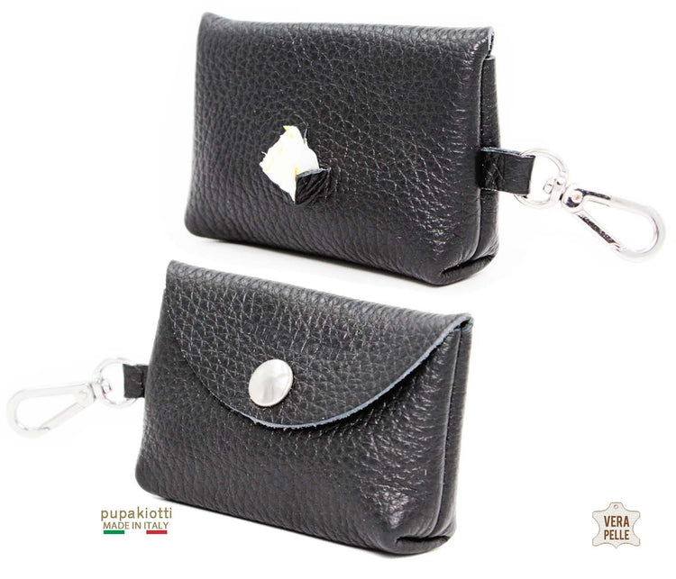 Practical and original bags dispenser in genuine leather for dog excrements. It has a convenient carabiner to attach it to the leash and a cross hole on the back to re... Continue reading